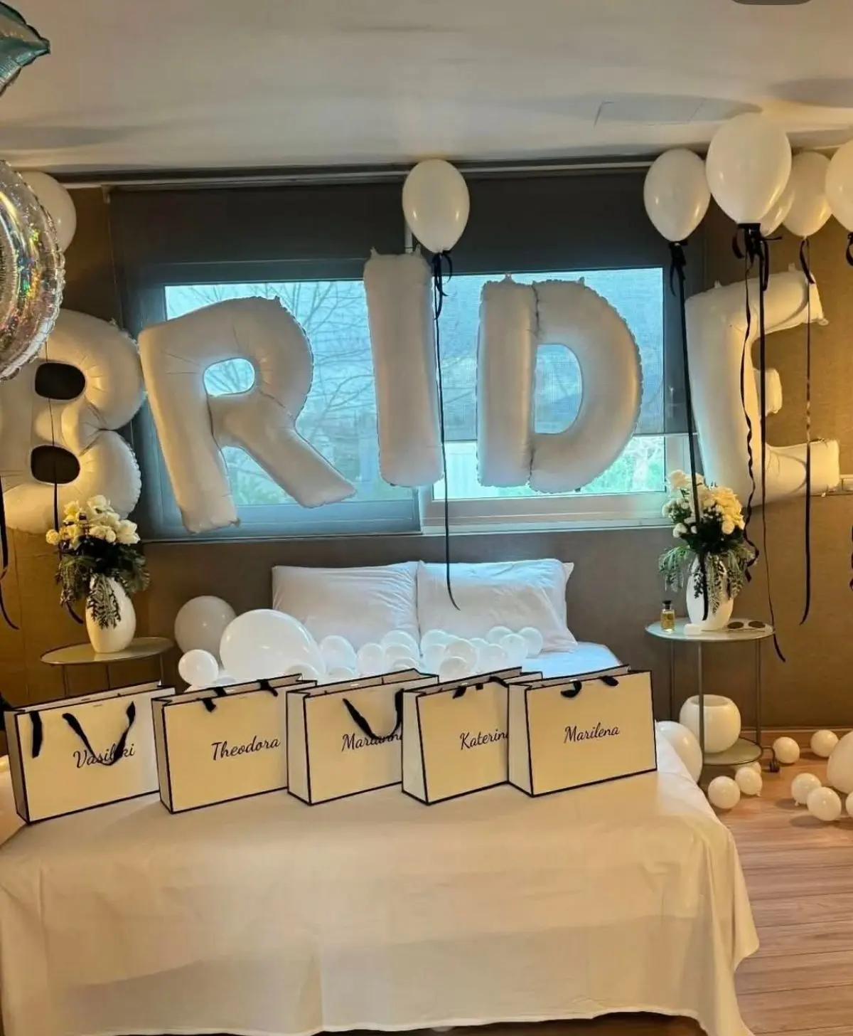 Συγκεκριμένα, στα στιγμιότυπα βλέπουμε την Μαριαλένα Ρουμελιώτη να ετοιμάζεται σε έναν όμορφα διακοσμημένο χώρο με μαύρα και άσπρα μπαλόνια, ενώ το κρεβάτι είναι στολισμένο με δώρα και ένα τεράστιο μπαλόνι που γράφει “bride”. Στο πλευρό της βρίσκονται όλα τα αγαπημένα της πρόσωπα, με την ίδια να λάμπει από ευτυχία!
